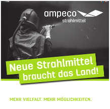 For the first time, the symposium was extended by an accompanying exhibition. Only a few selected companies from the supplier industry of the corrosion protection industry showed their products and services. AMPECO also presented its new and innovative blasting abrasives to members